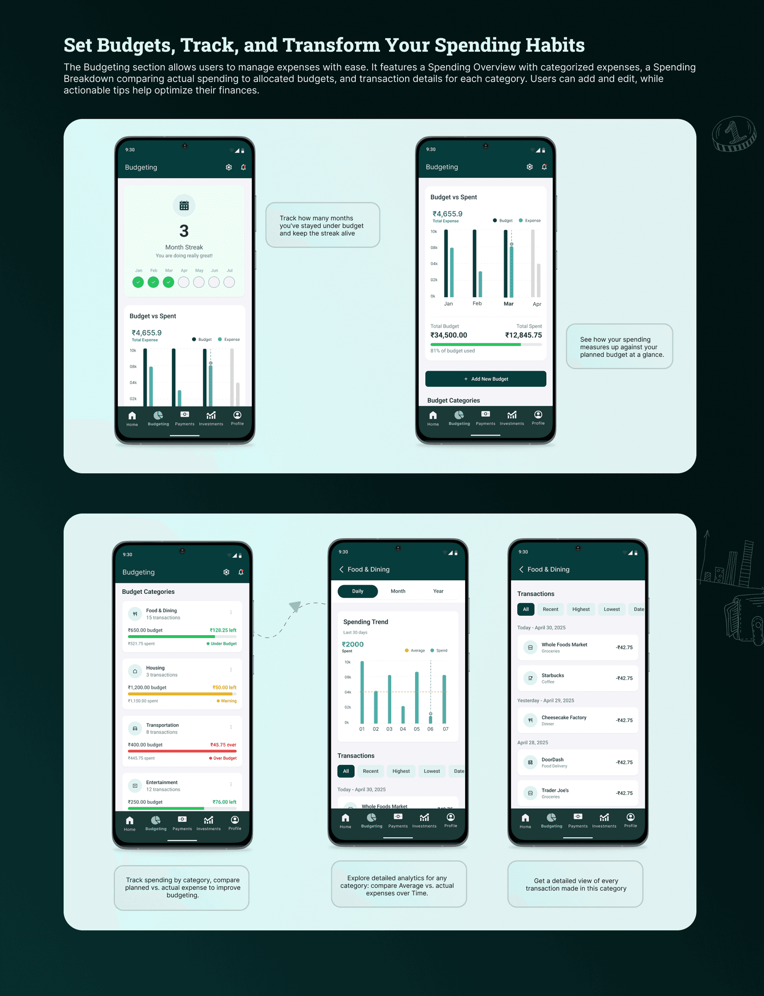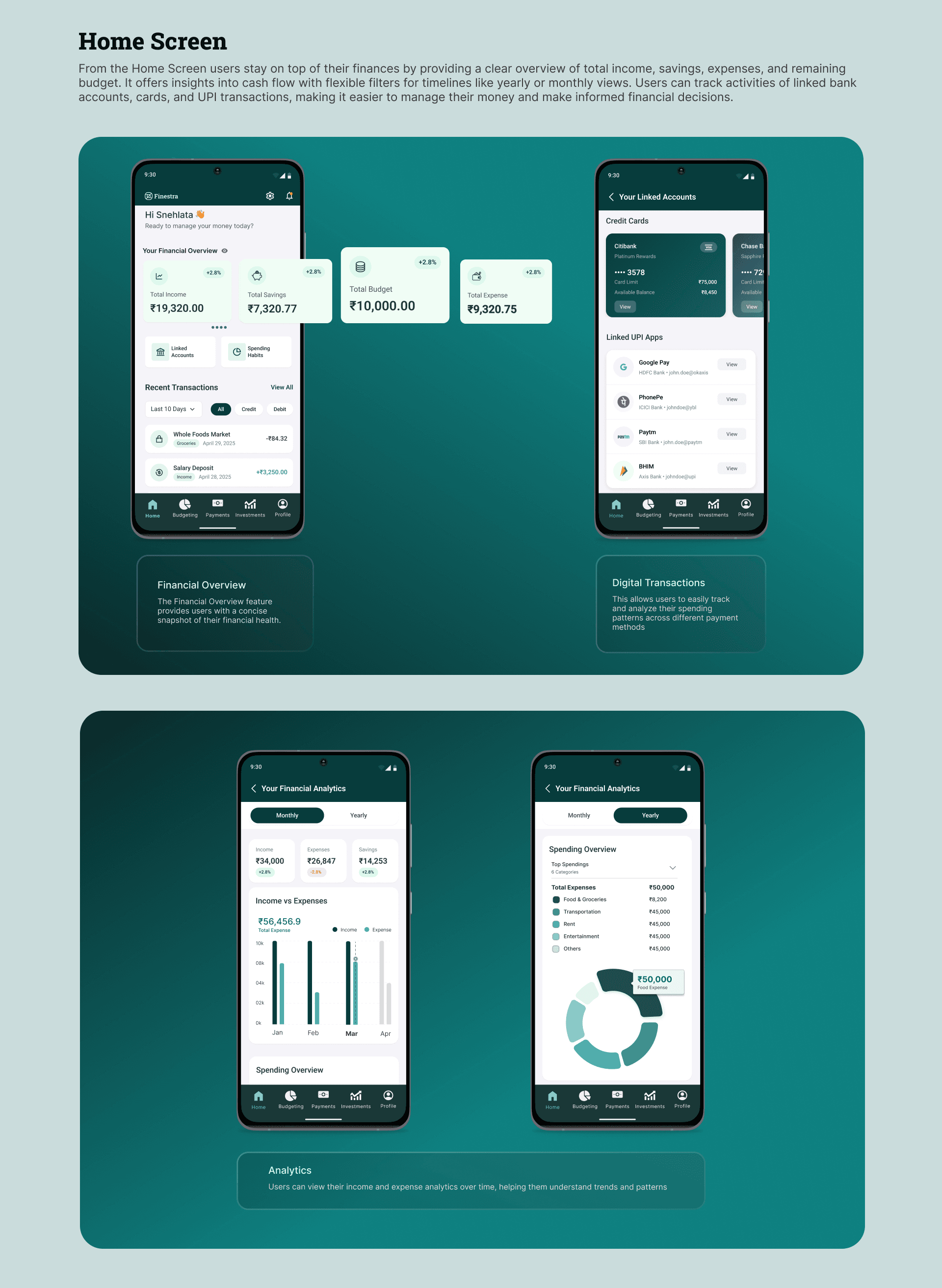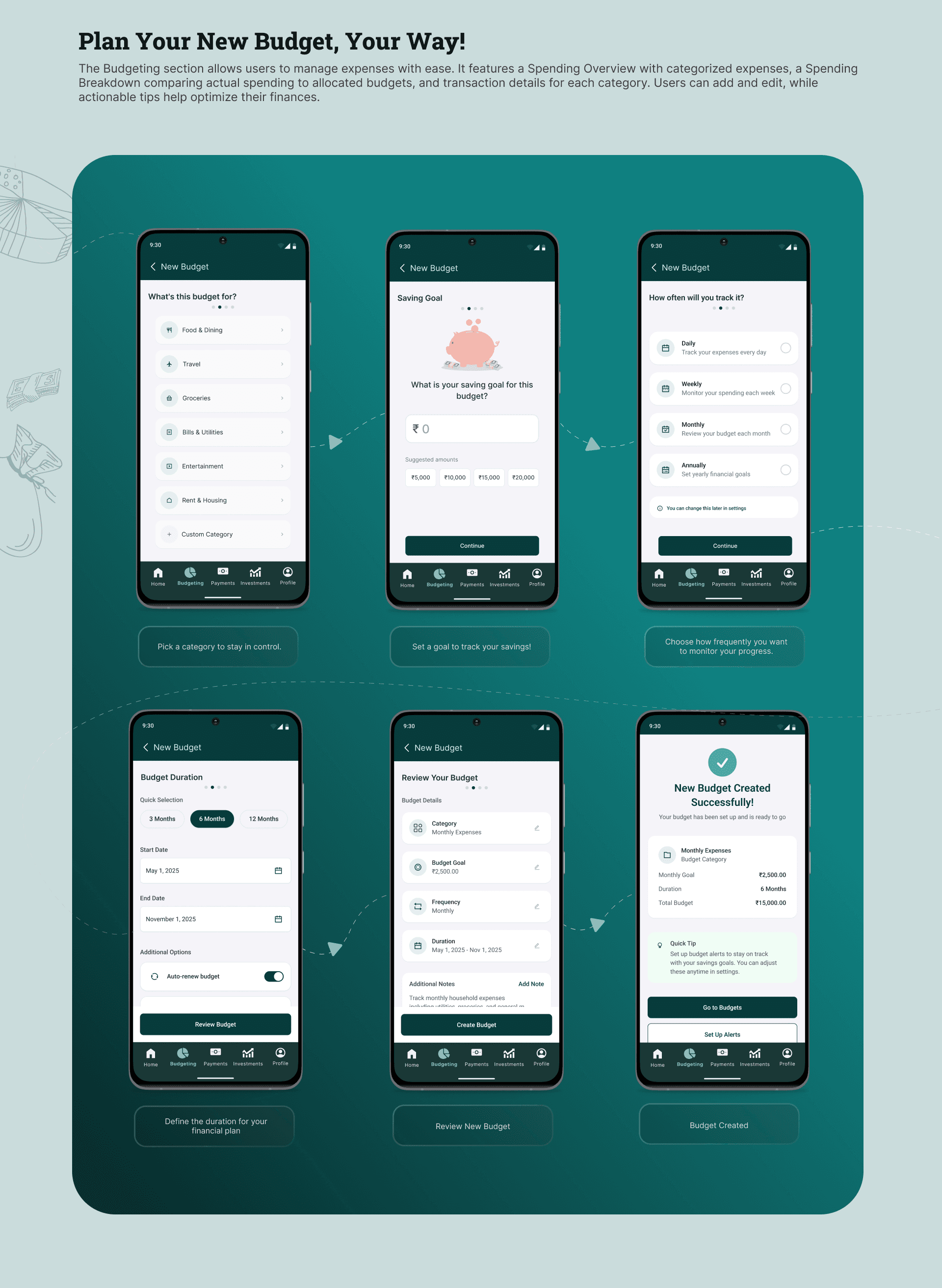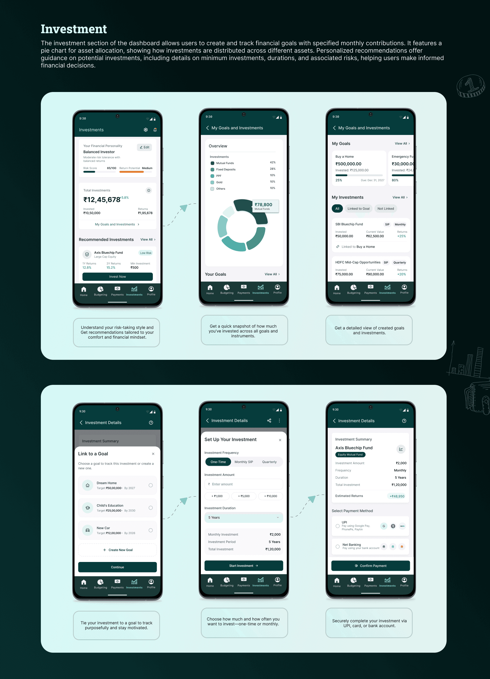 5. Goal-Based Planning: Enable users to set and track goals like saving for emergencies or retirement with visual progress indicators.
